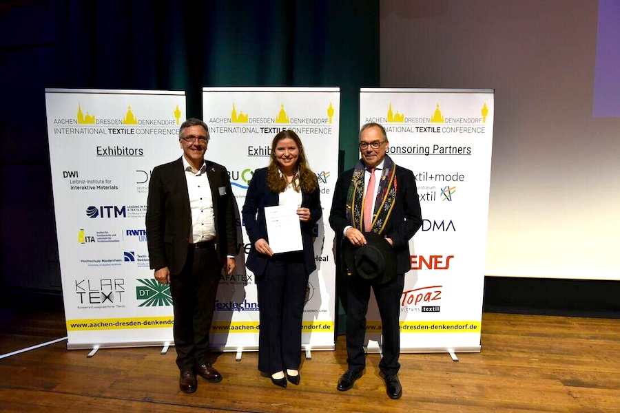 The fabric structures developed at the DITF as part of the research project “Auxetic Weaving Structures” (1IF22730N) thus have an adjustable Poisson's ratio with negative values down to −2. The auxetic effect is not only effective once, but can also be reliably demonstrated under repeated stress.