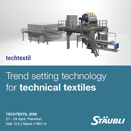 Stäubli, a global leader in high performance weaving technologies, is pleased to announce its participation at Techtextil 2026 in Frankfurt, Germany, the leading international trade fair for technical textiles and nonwovens. As technical textiles continue their rapid expansion across demanding markets such as defense, mobility, aerospace, construction, energy… Stäubli will showcase innovative solutions designed to empower mills to produce the next generation of advanced fabrics. Stäubli will exhibit its trend-setting technologies at the Swiss Pavilion Booth B01.6 in Hall 12.0.